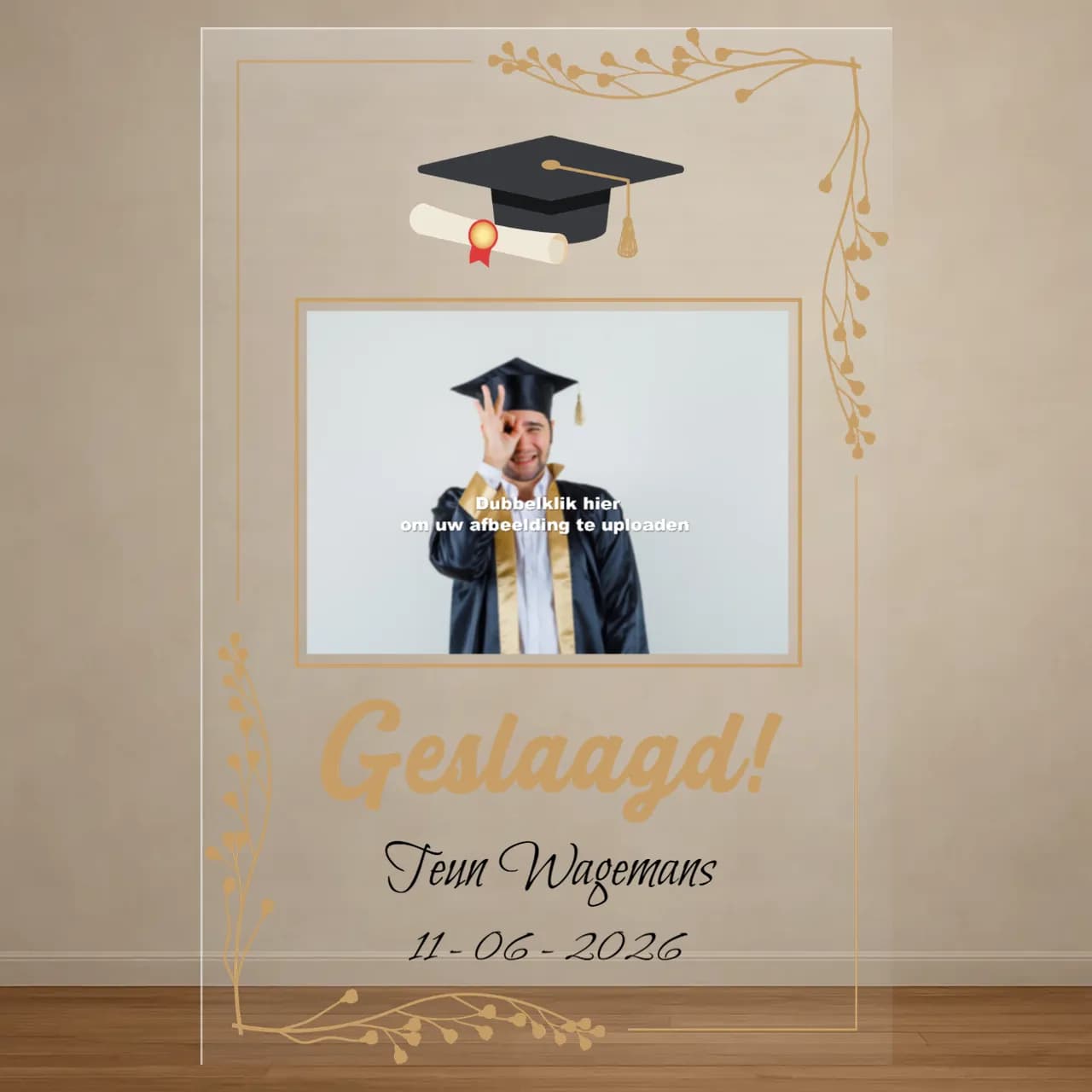 Vier het moment van geslaagd zijn met dit stijlvolle bedrukte plexiglas plaat. Volledig te personaliseren met: - Naam - Foto - Datum Een perfect en blijvend cadeau om dit bijzondere succes te herinneren! 🎓✨